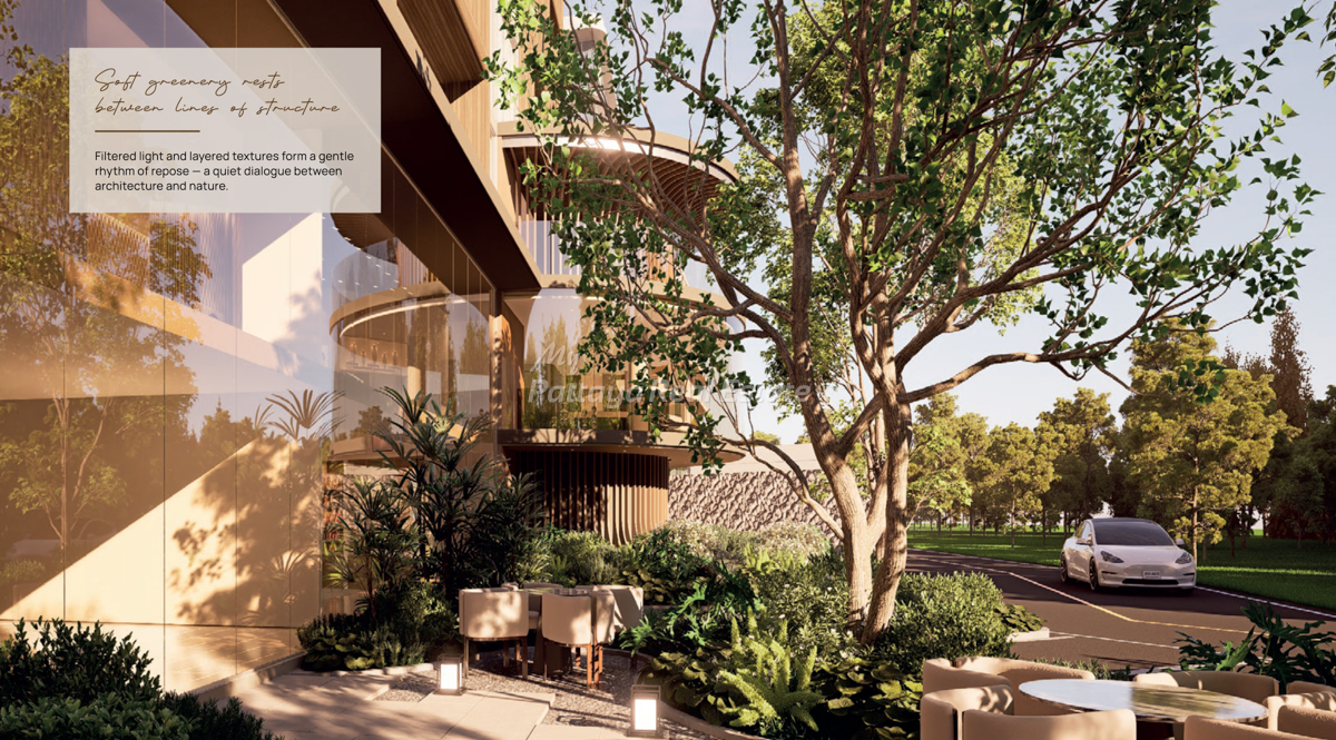 The residential building at Céline WongAmat Pattaya offers an exceptional array of thoughtfully planned amenities to ensure a convenient and comfortable lifestyle. These include a Basement car park accommodating approximately 33 vehicles w/ a controlled-access entry and exit barrier, as well as Ground Floor off-street parking for an additional 9 vehicles, located beside the pocket garden and main lobby entrance. Upon arrival, residents and guests are greeted by a tranquil pocket garden furnished w/ outdoor tables and chairs, creating a serene space to unwind and socialize. This sense of sophistication continues indoors, where an impressive hotel-style lobby, lounge, and reception area, highlighted by a bifurcated curved staircase and double-height ceilings, sets the tone of modern contemporary elegance. The Ground Floor also accommodates the onsite juristic management office, and 4 commercial shops (CM101 to CM104) for daily essentials, along w/ Male & Female restrooms and a disabled Uni-sex restroom for accessibility. On the 3rd Floor, residents enjoy a dedicated co-working space, while the Rooftop garden provides a peaceful retreat adorned w/ decorative potted trees and plants, and offers panoramic cityscape views.