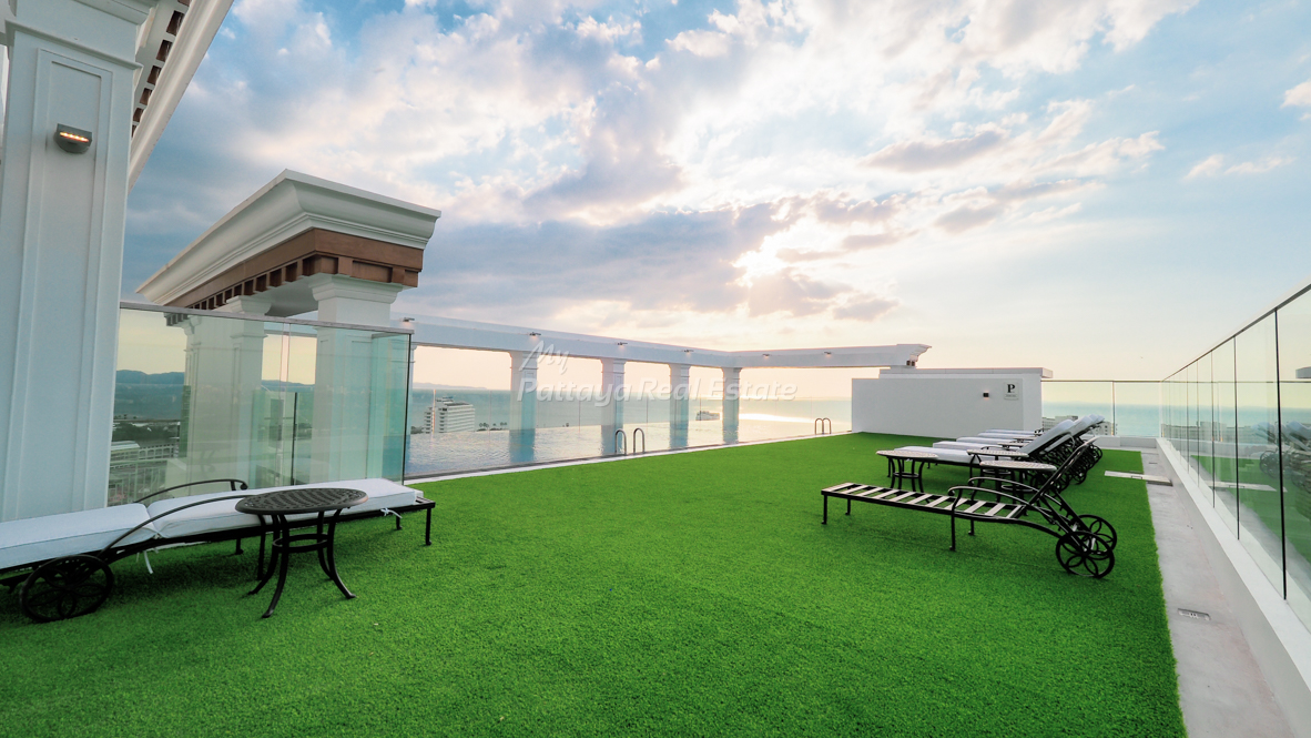 The project features an impressive array of amenities starting w/ the Ground Floor hotel-like drop-off point w/ a golden lion statue (which seems to be reoccurring theme) at its centerpiece and a Neoclassical themed lobby, lounge, reception desk and on-site juristic management office w/ double height ceilings and chandeliers. The project also features a mixture of outdoor car-parking on the Ground Floor w/ hydraulic (double occupancy) lifts and covered car parking on the 2nd Floor. Aside from the Ground Floor lush tropical landscaped garden w/ its decorative Neoclassical pond and water-feature, the project also features several themed sky gardens such as the modern, maze and classically themed sky gardens on the 10th, 12 & 15th Floors respectively. However the main showstopper and star attraction of this project has to be its Rooftop infinity-edged sky pool and sun terrace w/ panoramic sea and cityscape views. Whereas, additional Rooftop amenities include such things as a sky lounge / co-working space w/ a food preparation counter, sink and bar, as well as, a gymnasium w/ Male & Female change-rooms w/ toilets, showers and saunas. Last but not least, the project also features 24 Hour security and CCTV cameras for the added convenience and safety of its residents.