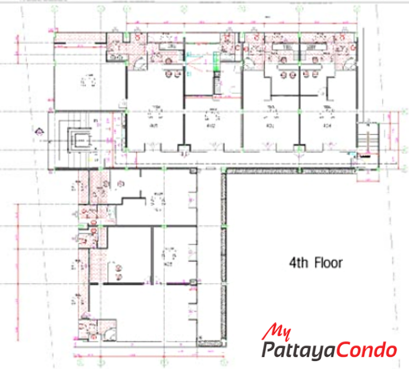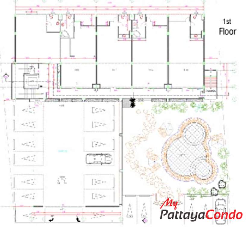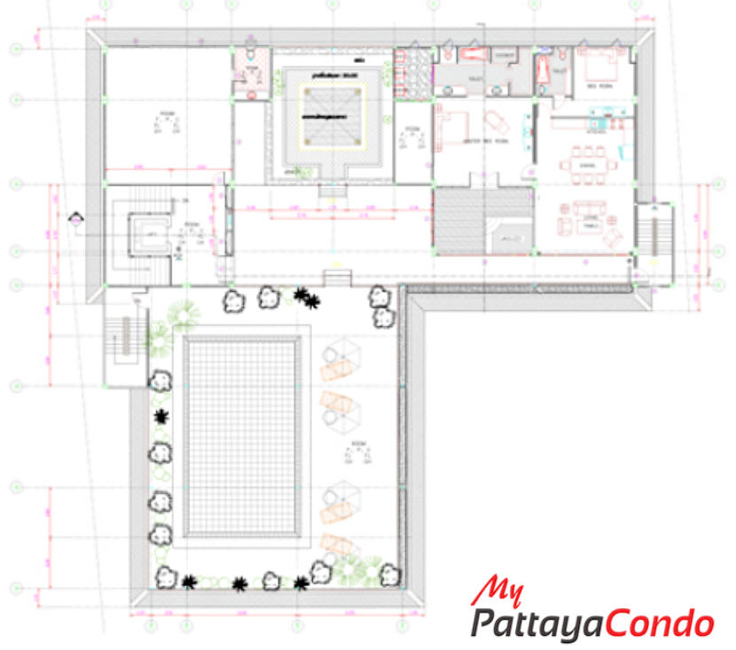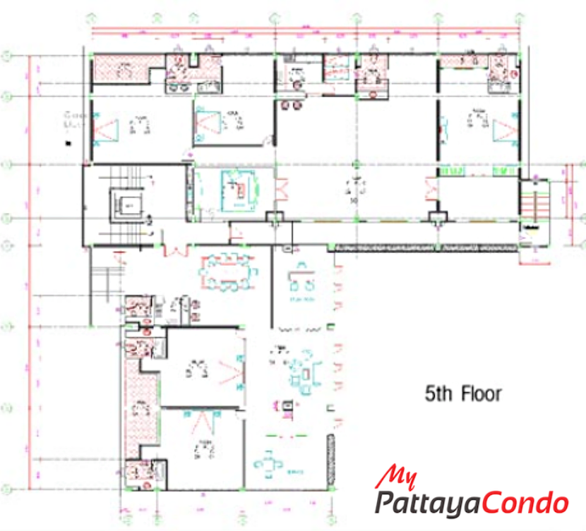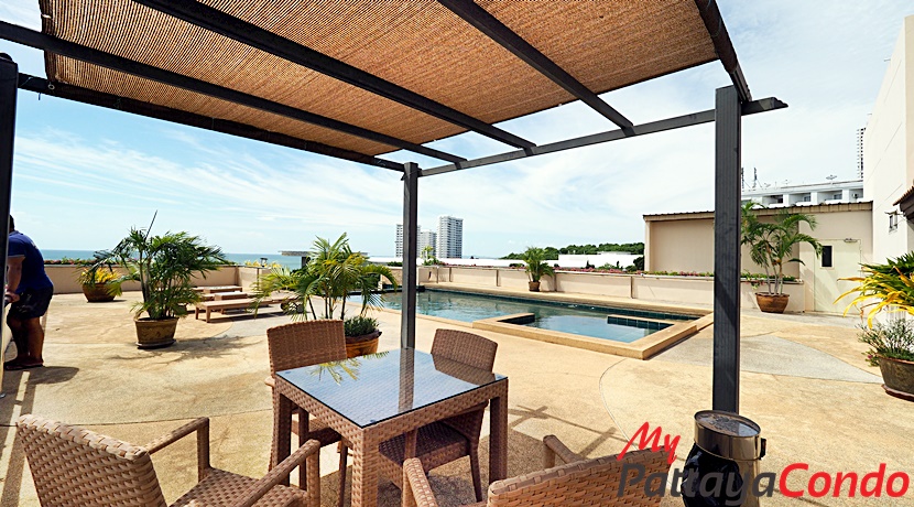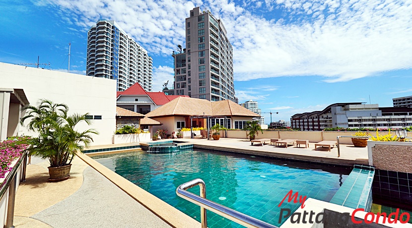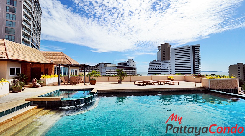 The project features an impressive array of amenities starting w/ it’s Ground Floor covered car park (11 Vehicles) and outdoor car park (4 Vehicles) w/ direct street access. Whereas, other Ground Floor amenities include such things as a lobby, reception, on-site juristic management office and swimming pool complete w/ a decorative fibre-glass rock formation and waterfall, as well as, a kids and jacuzzi pool set amongst a lush tropical landscaped garden. However the star attraction of this project has to be its rooftop infinity-edged swimming pool, sun terrace and rooftop gymnasium on the 6th Floor w/ panoramic sea views overlooking the 5 Star Royal Cliff Hotel.