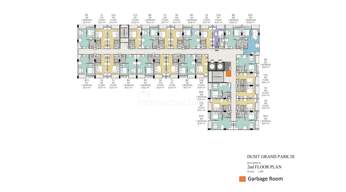 Pristine Park 3 Jomtien Pattaya is comprised of 1,325 residential apartments distributed across 6 low-rise, 8 Story buildings (A, B, C, D, E & F). These buildings are serviced by 2 High-speed passenger lifts in each building, ensuring convenient and efficient movement between floors. The units in Pristine Park 3 Jomtien Pattaya come in a variety of sizes, offering a range of options for potential buyers. Units range from entry level compact 25 Sq.M, Studio / 1 Bathroom apartments, to more spacious 34 to 43 Sq.M, 1 Bedroom / 1 Bathroom layouts, and culminate in expansive 58 to 65.50 Sq,M, 2 Bedroom / 2 Bathroom residences. This variety ensures that the development caters to a wide range of buyers, whether looking for a small vacation home or a spacious family apartment.