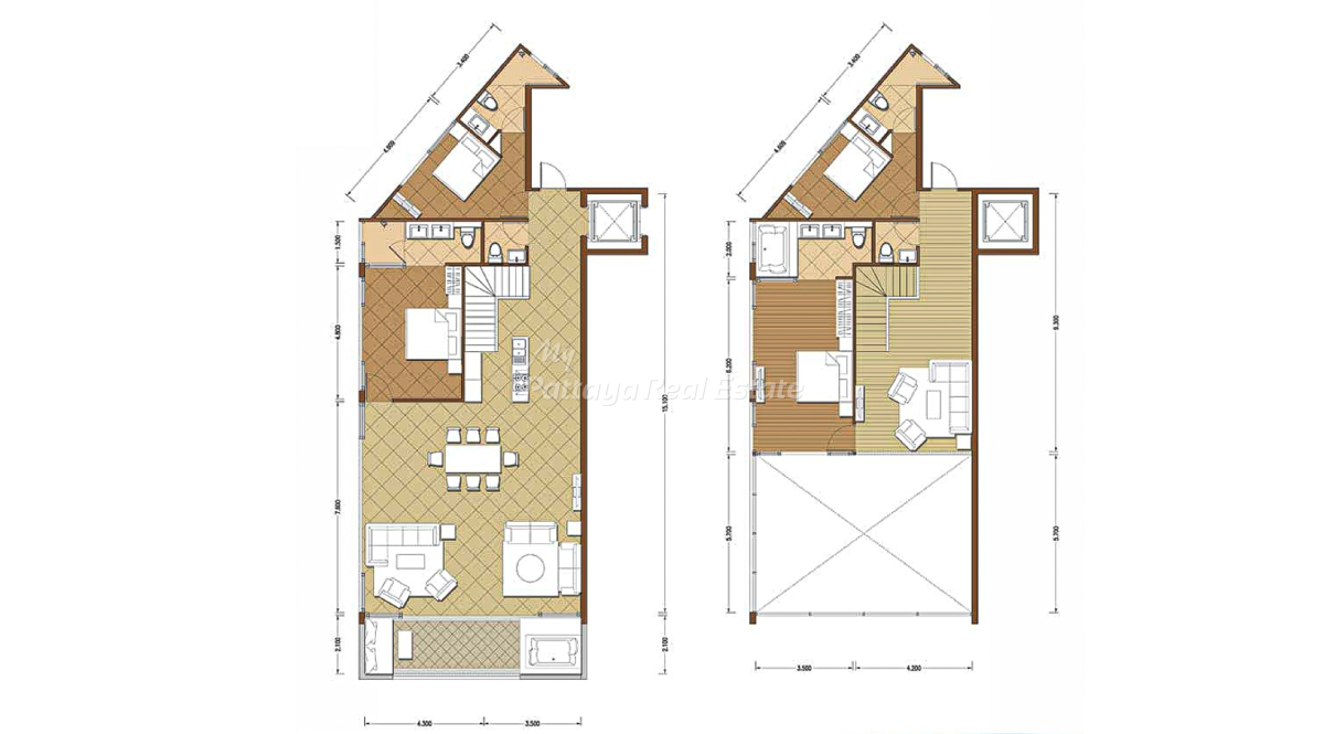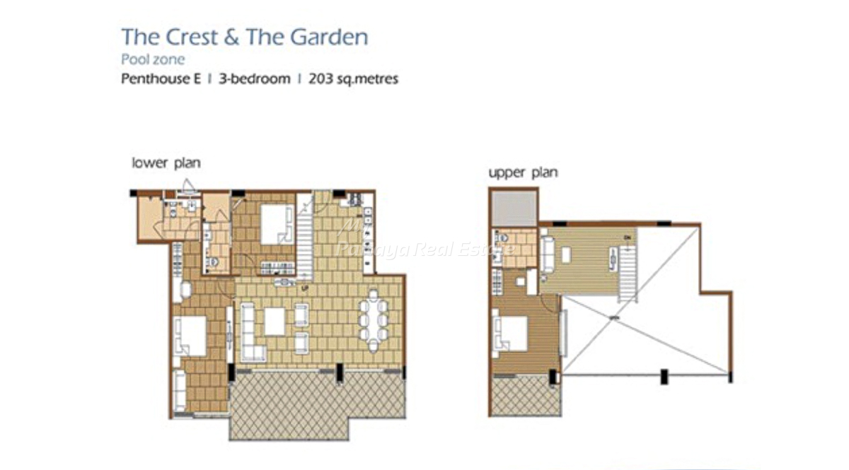 The Sanctuary WongAmat Pattaya – The Garden (A) & The Crest (B), Penthouse E, 203 Sq.M, 3 Bedroom / 3 Bathroom Penthouse Unit Plan.