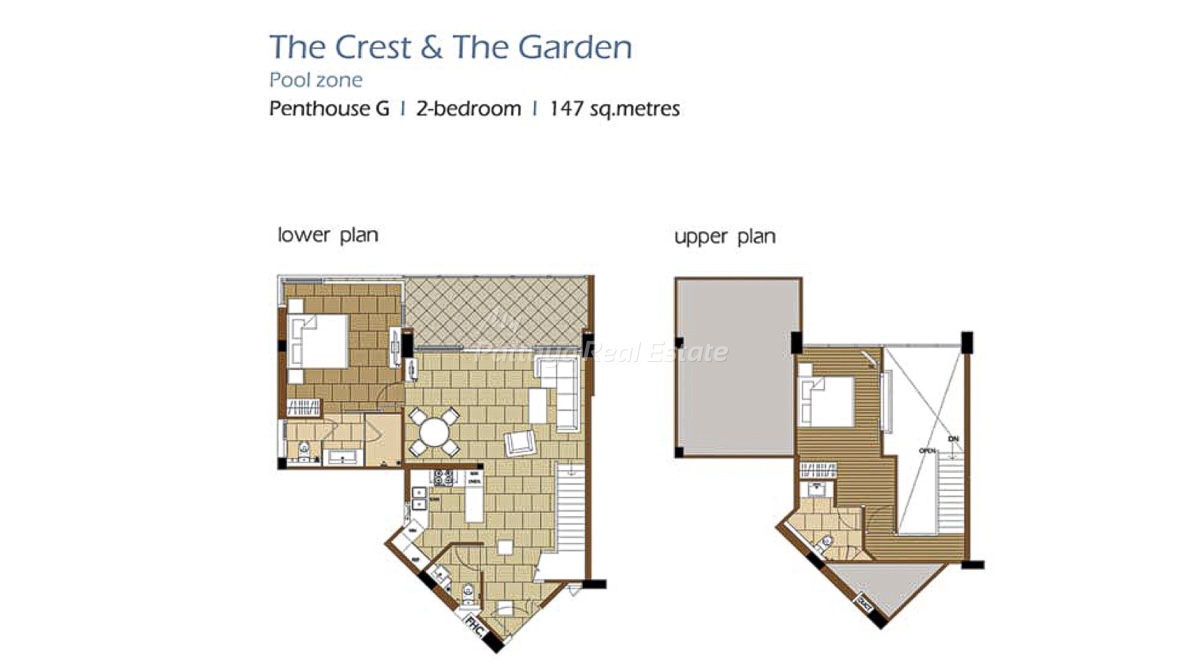 The Sanctuary WongAmat Pattaya – The Garden (A) & The Crest (B), Penthouse G, 147 Sq.M, 2 Bedroom / 2 Bathroom Penthouse Unit Plan.