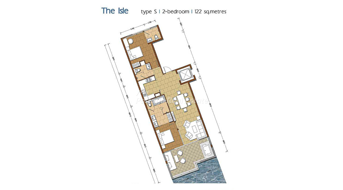 The Sanctuary WongAmat Pattaya – The Isle (C), Type S, 122 Sq.M, 2 Bedroom / 3 Bathroom Unit Plan.