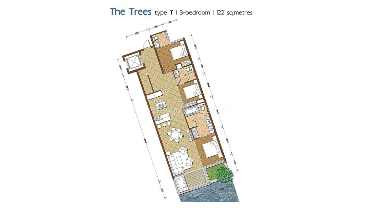 The Sanctuary WongAmat Pattaya – The Trees (D), Type T, 122 Sq.M, 3 Bedroom / 3 Bathroom Unit Plan.