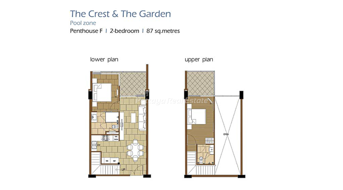 The Sanctuary WongAmat Pattaya – The Garden (A) & The Crest (B), Penthouse F, 87 Sq.M, 2 Bedroom / 2 Bathroom Unit Plan.