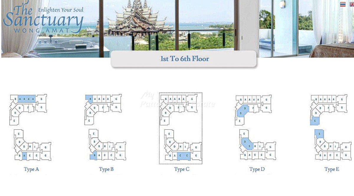 The Sanctuary WongAmat Pattaya – The Garden (A) & The Crest (B )- 1st to 6th Floor Plans.