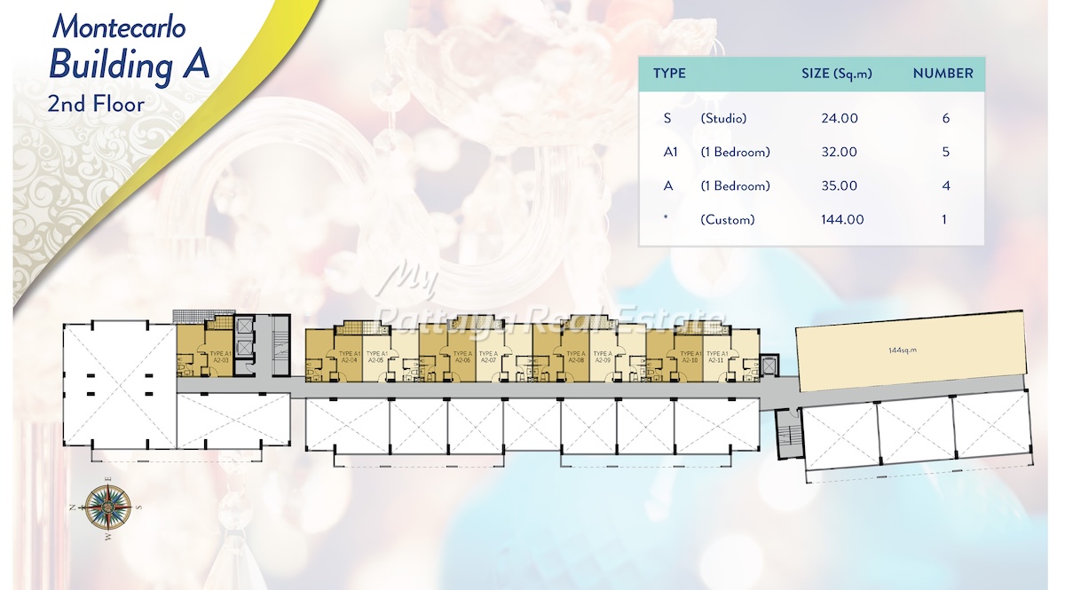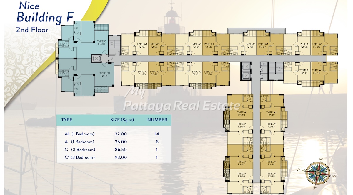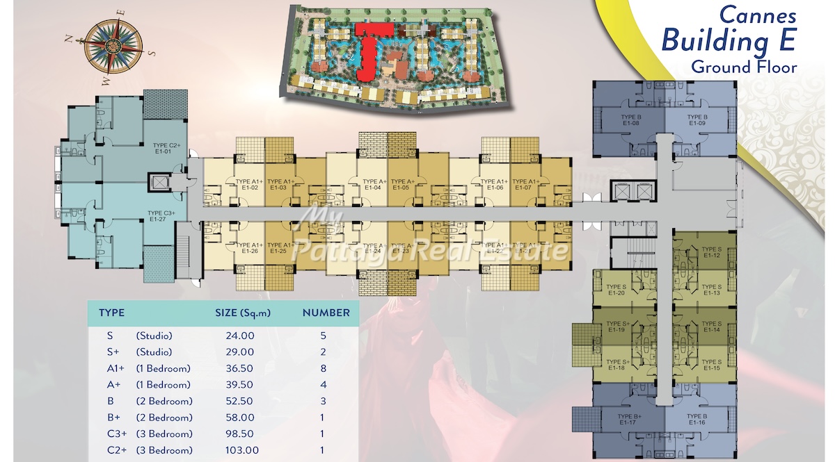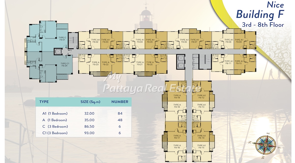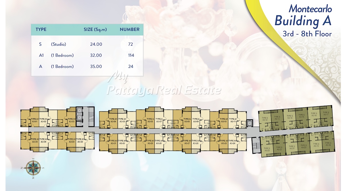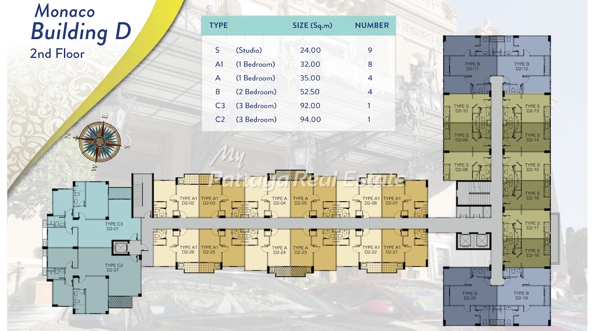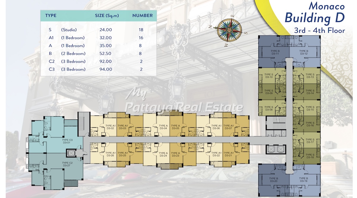 Seven Seas Côte ď Azur Condominium was the 2nd successfully project completed project under the “Seven Seas” brand by Universal Group (Thailand) Co.,Ltd., and was completed in Qtr 4, 2018. This fully themed French Riviera-inspired development is located on a prime 15 Rai – 2 Ngan – 11 Sq.Wah / 24,844 Square Meter plot of land alongside Soi 4 Na-Jomtien in Na-Jomtien. Whereas, the project itself is comprised of 1,308 apartments ranging in size from entry level 24 to 29 Sq.M, Studio / 1 Bathroom apartments followed by larger 35 to 36.50 Sq.M, 1 Bedroom / 1 Bathroom and even larger 58 to 73 Sq.M, 2 Bedroom / 2 Bathroom apartments before finally culminating in the ultimate creme-de-la-creme 86 to 103 Sq.M, 3 Bedroom / 2 Bathroom apartments spread across 6 low-rise, 8 Story buildings w/ 3 high-speed passenger lifts per building and a standalone clubhouse.