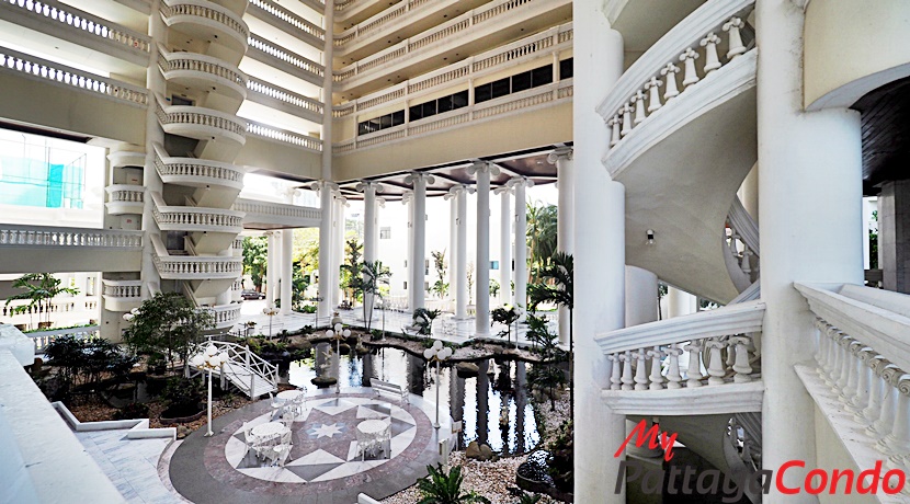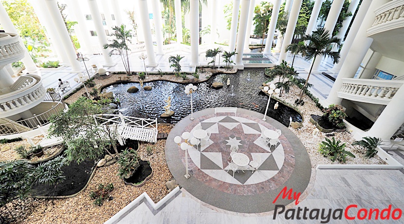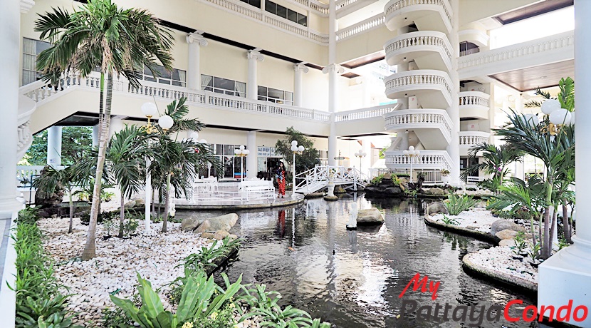 The project features an impressive array of amenities starting w/ its Ground Floor front entrance security booth w/ a controlled access boom and outdoor car park. Additional Ground Floor amenities includes such things as a grand lobby and central courtyard w/ grandiose roman columns and a decorative koi-fish pond, and overhanging footbridge as its main centerpiece, as well as, an on-site juristic management office and personal mailboxes. Whereas, the Mezzanine Floor features a gymnasium, sauna and games room w/ both pool & ping-pong tables. While the secondary, 3 Story building contains a Basement car park, Ground Floor commercial shops (some w/ direct street access) and 2 Rooftop tennis courts. However the star attraction of this project has to be its Ground Floor communal swimming pool and sundeck set amidst a lush tropical landscaped garden w/ direct beach access via a private gate and stairwell which serves as the projects primary focal point.