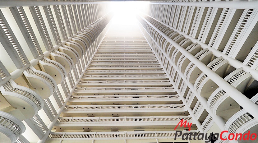 Park Beach Condominium was completed back in Qtr 3, 1992 by Sky Beach Condominium Co.,Ltd., and is situated on a prime direct beachfront plot of land of approximately 6 Rai – 2 Ngan – 0 Sq.Wah / 10,400 Square Meters alongside Soi Saran Chol in WongAmat Pattaya. Whereas, the project itself is comprised of 420 apartments ranging in size from entry level 54 Sq.M, Studio / 1 Bathroom apartments followed by larger 93 Sq.M, 1 Bedroom / 1 Bathroom and 100 to 124 Sq.M, 2 Bedroom / 2 Bathroom apartments and even larger 163 Sq.M, 3 Bedroom / 3 Bathroom apartments before finally culminating in the ultimate creme-de-la-creme 676 Sq.M, 4 Bedroom / 4 Bathroom penthouse apartment spread across a single, 42 Story, high-rise building w/ Romanesque columns and a central inner-core atrium w/ 5 high-speed passenger lifts (inclusive of 1 panoramic lift).