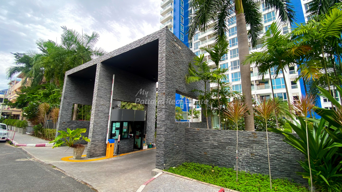The main lobby of The Cliff Condominium Pattaya opens onto the project’s star attraction – a sprawling Ground Floor swimming pool and sundeck, which is notably generous in scale relative to the building’s footprint. Set within lush tropical landscaping, this resort-style retreat includes a children’s shallow pool, a large freeform main pool w/ a jacuzzi zone, fiberglass faux rock formations, and a curved waterslide. A surrounding sundeck w/ sun-loungers, umbrellas, tables, and chairs adds to the relaxed resort-like ambiance. Overlooking this tranquil space is a standalone structure housing the gymnasium, fully equipped w/ cardio and weight-training equipment, lockers, and separate Male & Female changing rooms w/ toilets, showers, and sauna facilities – offering residents a complete wellness experience. Last but not least, The Cliff Condominium Pattaya also features 24 Hour security and CCTV cameras for the added convenience and safety of its residents.