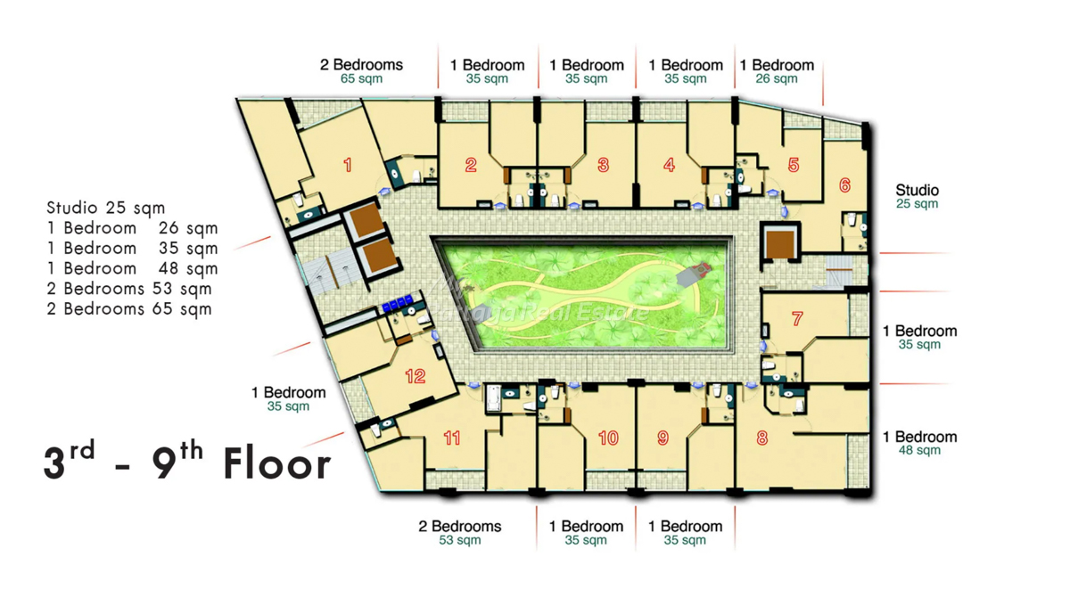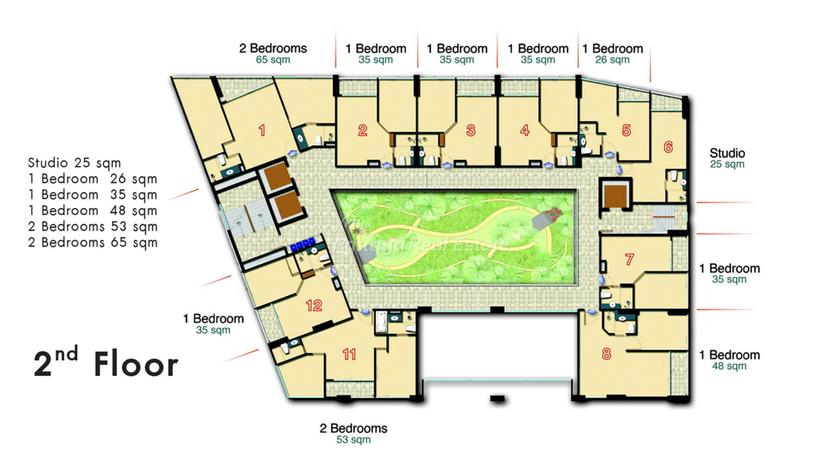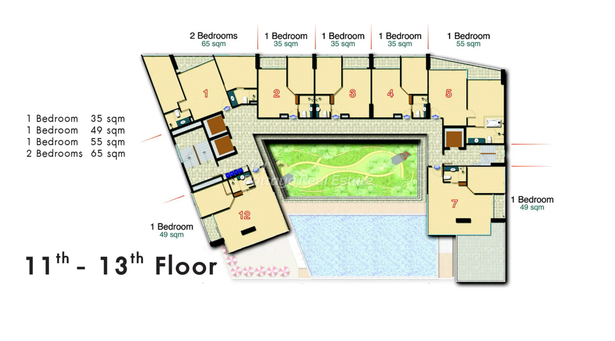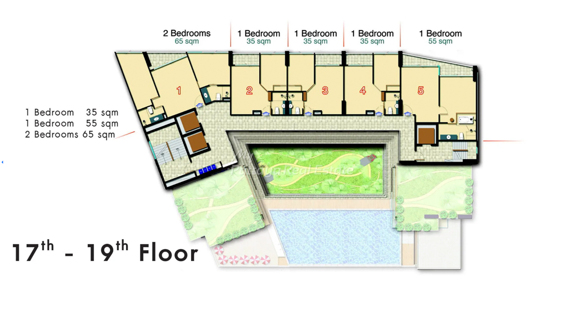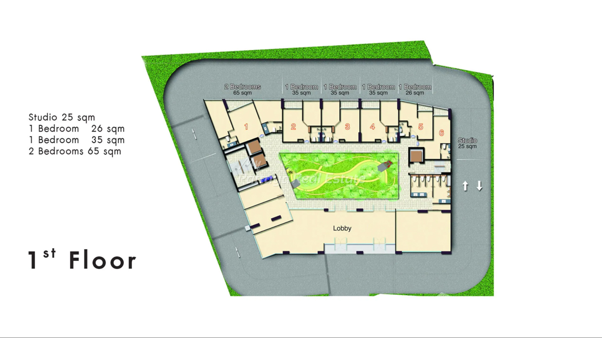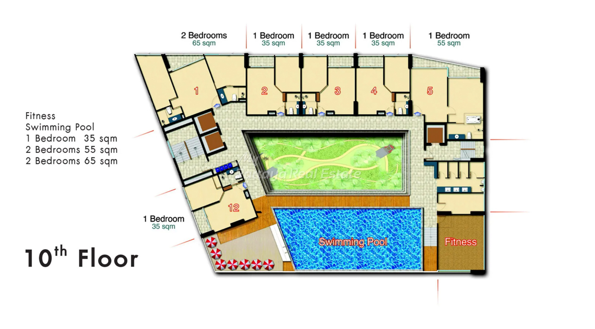 The Cloud Condominium Pattaya boasts an impressive array of amenities starting w/ its Basement & Lower Ground Floor car park w/ controlled access for 27 vehicles, along w/ a circular looped perimeter driveway set amidst a lush tropical landscaped garden w/ a Buddhist shrine. Additional Ground Floor amenities includes such things as a Ground Floor lobby, lounge, reception and onsite juristic management office, as well as, 2 onsite commercial shop units and Male & Female communal toilets. Followed by an infinity-edged swimming pool and sundeck w/ panoramic sea and cityscape views on the 10th Floor, along w/ a gymnasium, Male & Female change-rooms and Uni-sex steam and sauna rooms. However the projects main star attraction has to be its Ground Floor courtyard atrium garden w/ its decorative koi-fish ponds set amidst lush tropical potted plants and trees which serves as the projects primary focal point. Last but not least, The Cloud Condominium Pattaya also features 2 communal sky gardens on the 16th Floor and a Rooftop viewing platform, along w/ 24 Hour security & CCTV cameras for the added convenience and safety of its residents.