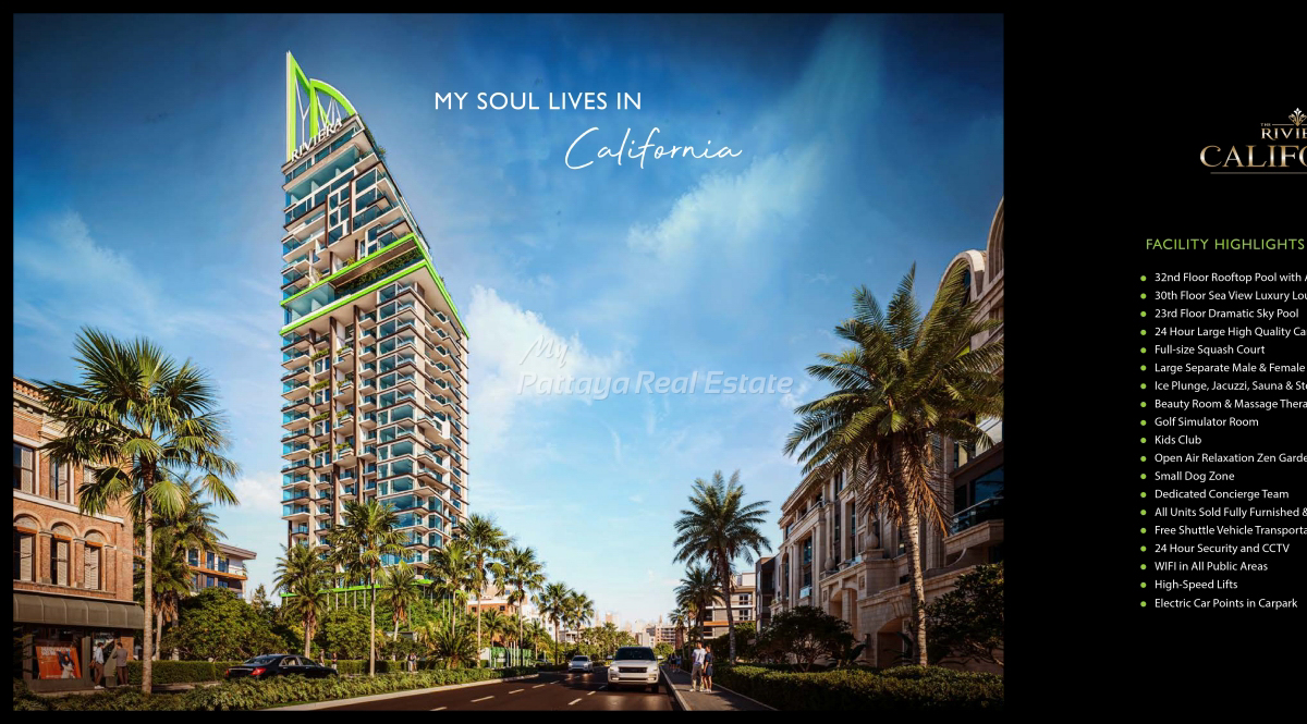 The Riviera Malibu California Pattaya is the 9th project to date by this Developer namely, The Riviera Group Co.,Ltd., and is situated on a prime 1 Rai – 0 Ngan – 80 Sq.Wah / 1,920 Square Meter plot of land directly alongside Thappraya Road in South Pattaya. Whereas, the project itself is comprised of 122 apartments starting from entry level 34 to 70 Sq.M 1 Bedroom / 1 Bathroom apartments followed by even larger 61 to 84 Sq.M, 2 Bedroom / 2 Bathroom apartments and even larger 91 to 161 Sq.M, 3 Bedroom / 3 Bathroom apartments before finally culminating in the ultimate creme-de la creme 197 to 254 Sq.M, 3 or 4 (optional) Bedroom / 3 Bathroom Penthouse apartments spread across a single, 33 Story, high-rise building w/ 2 high-speed passenger lifts and 1 high-speed service lift.
