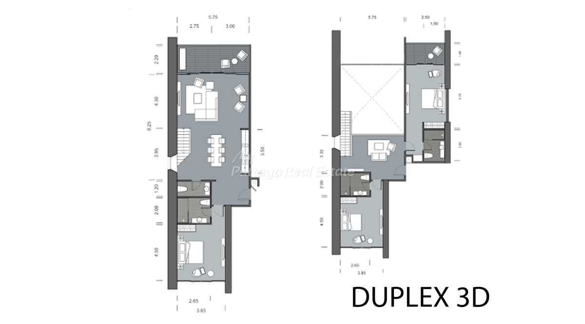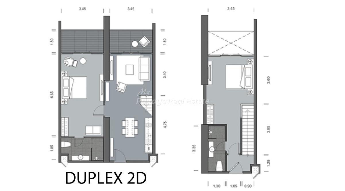 Zire WongAmat Pattaya – Type 2D, 108 Sq.M, 2 Bedroom / 2 Bathroom Duplex Penthouse Unit Plan.