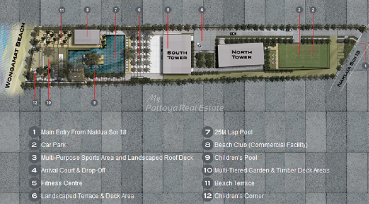 Zire WongAmat Pattaya (4th) marks Raimon Land’s 4th residential development in Pattaya, and was successfully completed in Qtr 4, 2015. Developed by Raimon Land Development Co.,Ltd., the project occupies a prestigious 5 Rai – 3 Ngan – 70 Sq.Wah / 9,480 Square Meter freehold land parcel w/ direct beach access along Soi Saranchol, in the highly exclusive neighborhood of Wong Amat in Pattaya.